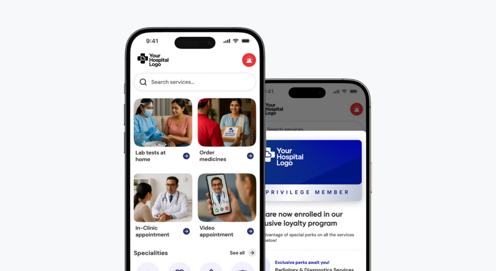 Over 60% of patients don’t return after one visit. Your own app with a fail-proof loyalty system brings them back for lab tests, medicines, and follow-ups.